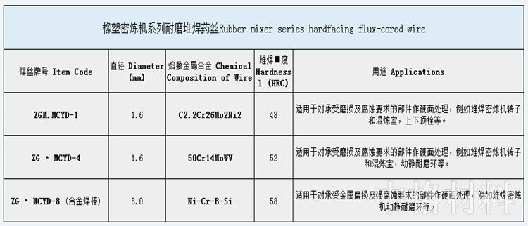 產(chǎn)品分類:橡塑密煉機(jī)系列耐磨堆焊藥芯焊絲
